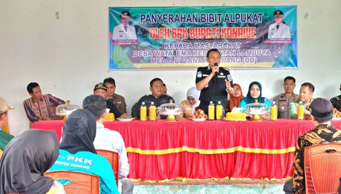 MEDIASULTRA.CO.ID I KONAWE – Bupati Konawe, H. Yusran Akbar, S.T., menyerahkan bantuan 500 bibit tanaman Alpukat kepada masyarakat Desa Watarema, Kecamatan Lambuya, pada Kamis (12/2/2026).