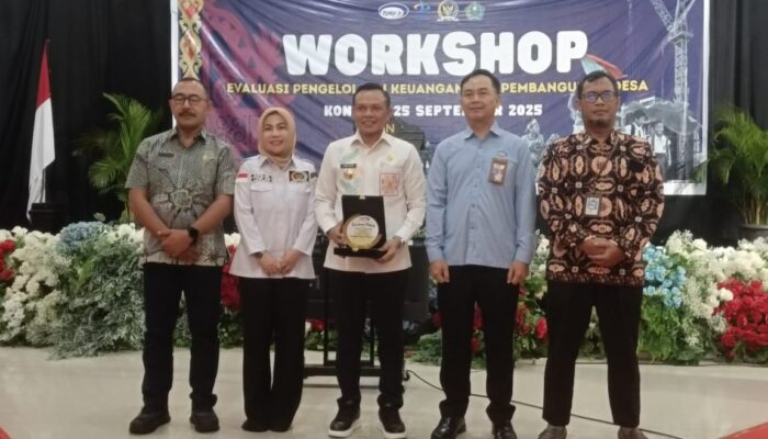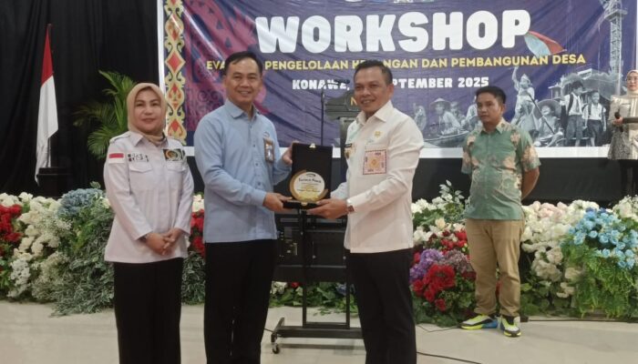 Pembukaan Workshop Evaluasi Pengelolaan Keuangan dan Pembangunan Desa Tahun 2025 di Kabupaten Konawe, yang dipimpin langsung oleh Bupati H. Yusran Akbar, ST. Acara ini merupakan kolaborasi antara BPKP Perwakilan Sulawesi Tenggara, Pemprov Sultra, dan Pemkab Konawe, dengan tujuan memperkuat tata kelola keuangan desa, mendorong inovasi berbasis potensi lokal, dan mendukung visi “Membangun Desa, Menata Kota, Menuju Konawe Bersahaja.” (JM).