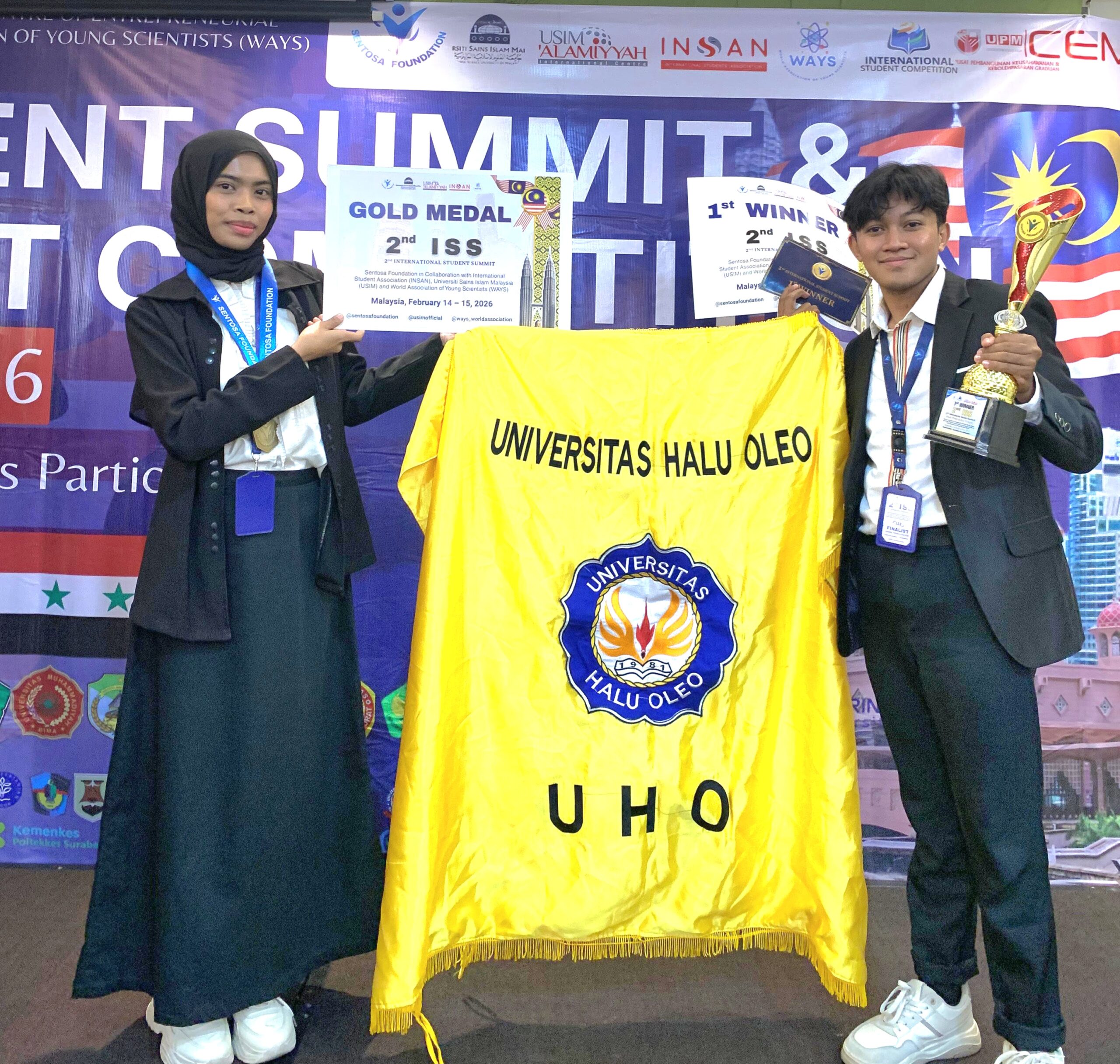MEDIASULTRA.CO.ID I KENDARI – Prestasi membanggakan kembali ditorehkan mahasiswa Universitas Halu Oleo (UHO) Kendari di kancah internasional. Dua mahasiswa yang tergabung dalam satu tim berhasil meraih Gold Medal sekaligus menyabet gelar First Winner of 2nd International Student Summit (International Essay Competition).