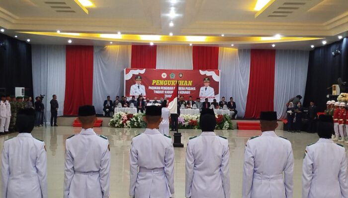 MEDIASULTRA.CO.ID I UNAAHA – Dua hari menjelang peringatan Hari Ulang Tahun Kemerdekaan Republik Indonesia ke-80, sebanyak 74 pemuda-pemudi terpilih secara resmi dikukuhkan sebagai anggota Pasukan Pengibar Bendera Pusaka (Paskibraka) Kabupaten Konawe tahun 2025. Upacara pengukuhan berlangsung khidmat di sebuah hotel di Unaaha, Jumat (15/8/2025), dan dihadiri langsung oleh Bupati Konawe, H. Yusran Akbar, ST., serta sejumlah pejabat penting daerah.