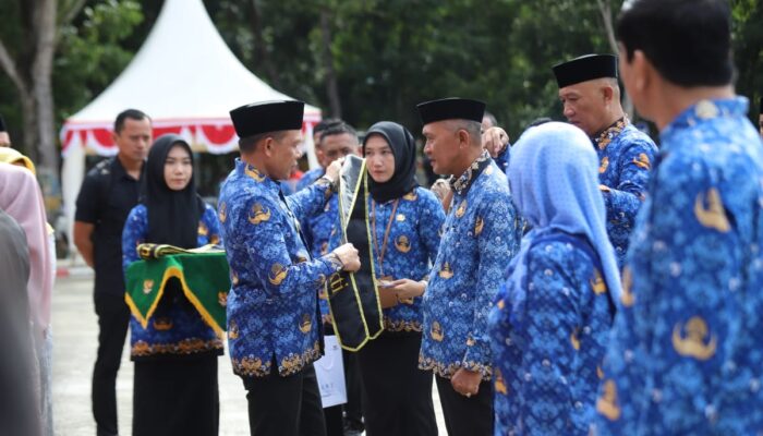 Usai apel, acara bergeser ke momen yang penuh keharuan dan kebanggaan. Bupati Yusran Akbar secara simbolis menyerahkan Satyalancana Karya Satya kepada 13 ASN terpilih.