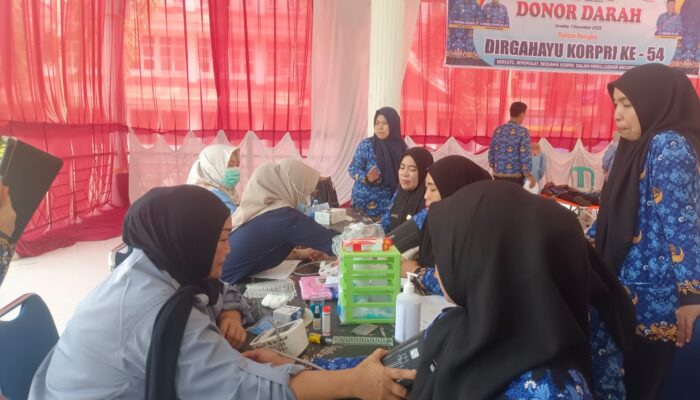 MEDIASULTRA.CO.ID I UNAAHA – Peringatan Hari Ulang Tahun (HUT) Ke-54 Korps Pegawai Republik Indonesia (KORPRI) Tingkat Kabupaten Konawe, Senin (1/12/2025), berlangsung khidmat dan sarat makna. Dipimpin langsung Bupati Konawe H. Yusran Akbar, S.T., acara di Lapangan Upacara Pemda Konawe menyatukan tiga pesan kuat: kesiapsiagaan melalui apel, apresiasi melalui penganugerahan Satyalancana dan pelepasan purnabakti, serta kepedulian melalui donor darah massal.