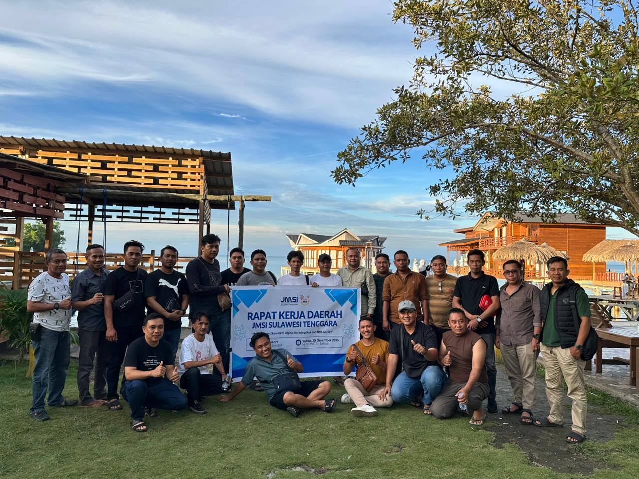 Usai melantik Pengurus Cabang (Pengcab) Kolaka Raya dan Pengcab Kota Kendari, Ketua JMSI Sultra, Adhi Yaksa Pratama lanjut menyelanggaralan Rapat Kerja Daerah (Rakerda) di Delisha Resort, Kabupaten Konawe, Sabtu 20 Desember 2025.