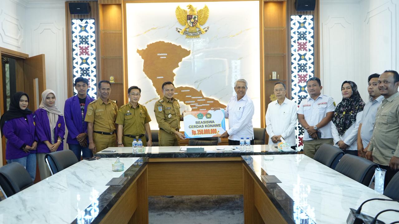 MEDIASULTRA.CO.ID I KONAWE – Dalam upaya memperkuat kualitas Sumber Daya Manusia (SDM) di Kabupaten Konawe, Bupati H Yusran Akbar ST, secara resmi meluncurkan program beasiswa bagi mahasiswa Universitas Lakidende (Unilaki). Penyerahan dana beasiswa senilai Rp 250 juta dilakukan langsung oleh Bupati kepada Rektor Unilaki, Prof. Dr. Ir. La Karimuna, M.Sc.Agr di ruang rapat Bupati, kompleks perkantoran Pemda Konawe, Unaaha, pada Senin (25/8/2025).